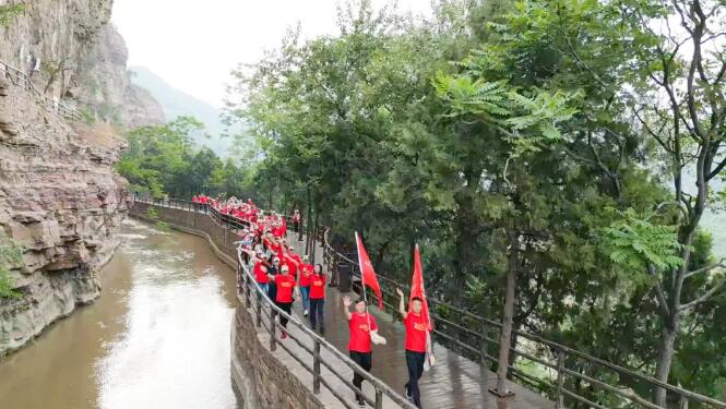 隨后,大家沿著紅飄帶來(lái)到了紅旗渠總干渠的咽喉工程——青年洞,通過(guò)聽(tīng)講解、觀實(shí)物、看實(shí)景、走長(zhǎng)渠等,切身實(shí)地感受紅旗渠精神的深刻內(nèi)涵。走在半個(gè)世紀(jì)前完工的紅旗渠邊,山壁上的一幅幅題字、一幕幕修渠場(chǎng)景次第呈現(xiàn),每個(gè)人都不禁感嘆先輩們“自力更生、艱苦創(chuàng)業(yè)、團(tuán)結(jié)協(xié)作、無(wú)私奉獻(xiàn)”的紅旗渠精神。通過(guò)實(shí)地的觀摩和學(xué)習(xí),大家真切地感受到了林州人民創(chuàng)業(yè)的艱苦,加深了對(duì)紅旗渠精神的認(rèn)識(shí)和理解,也更加堅(jiān)定了傳承和發(fā)揚(yáng)這一精神的信念。